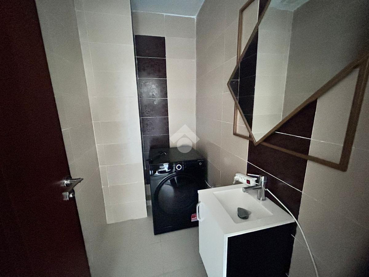 L’appartement comprend également une salle de bain, une chambre à coucher avec dressing encastré, ainsi qu’une buanderie.