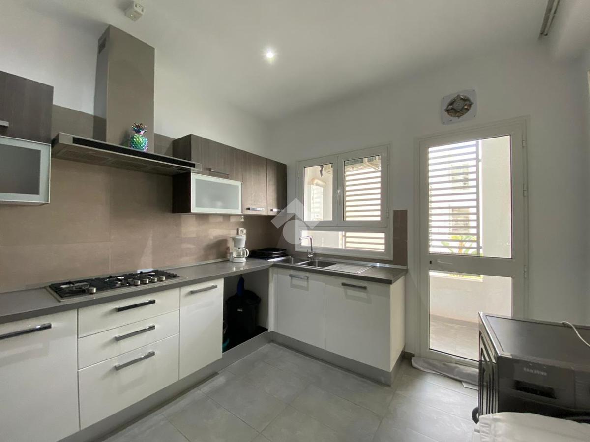 Dès l’entrée, vous découvrirez un salon–salle à manger lumineux ouvrant sur un balcon. La cuisine entièrement équipée (plaque, hotte, four, micro-ondes) dispose également d’un séchoir.